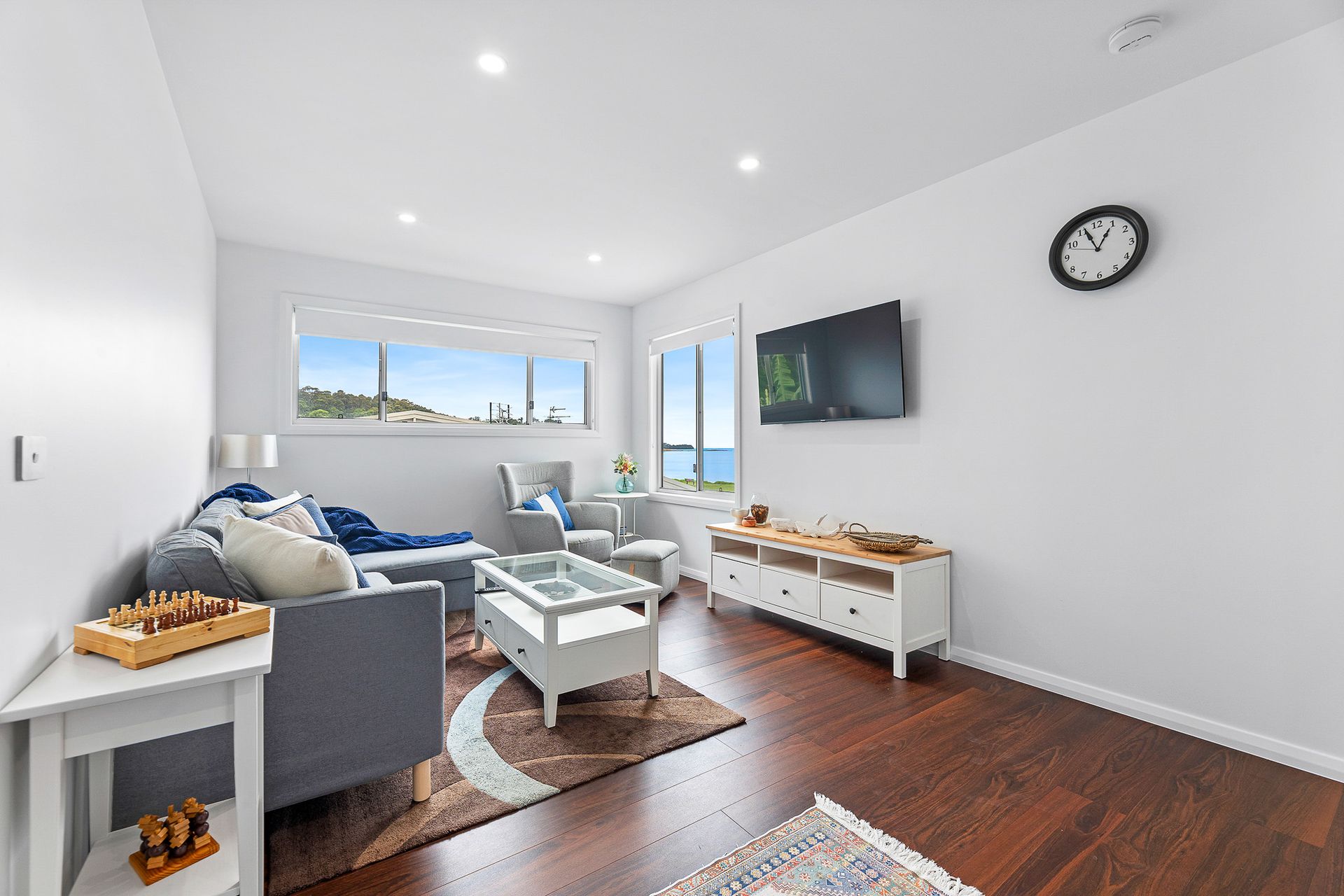 The crown jewel of this home is the main bedroom, strategically positioned on the upper floor to offer unparalleled views of Long Beach. Wake up to the sight of the sunrise painting the sky in warm hues, and let the gentle sound of the ocean be your morning soundtrack. The upstairs layout ensures that the private spaces of the home capture the full beauty of the coastal landscape.