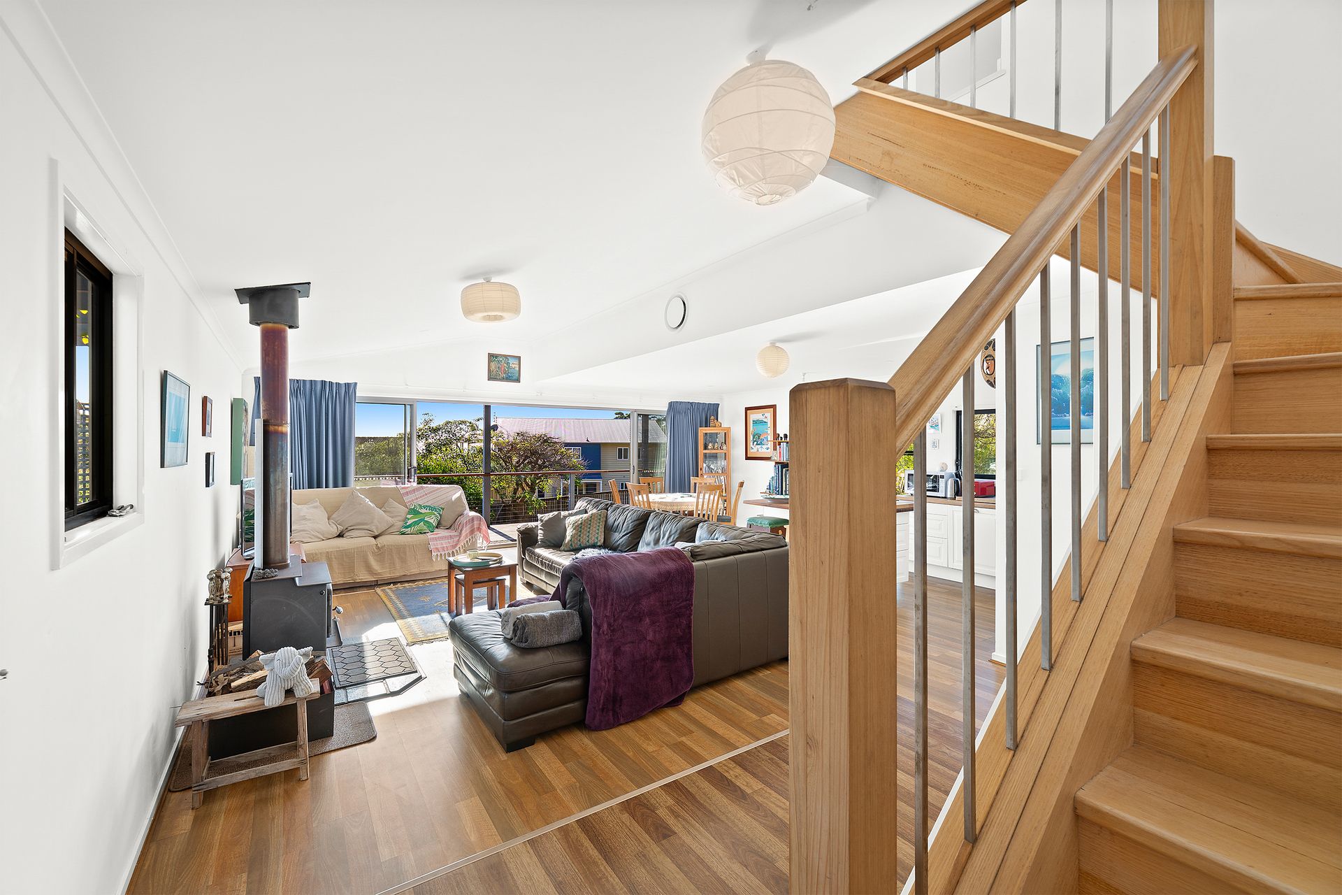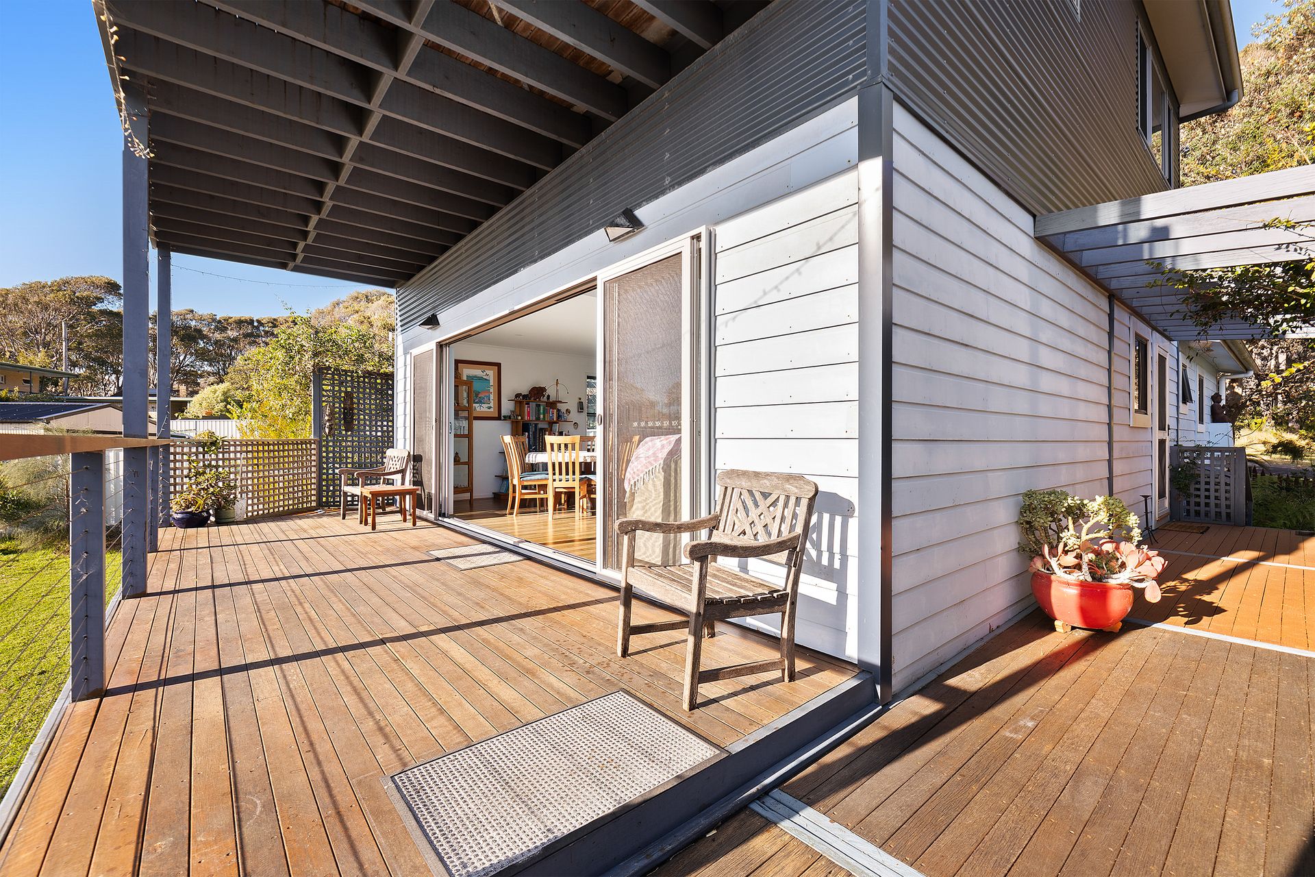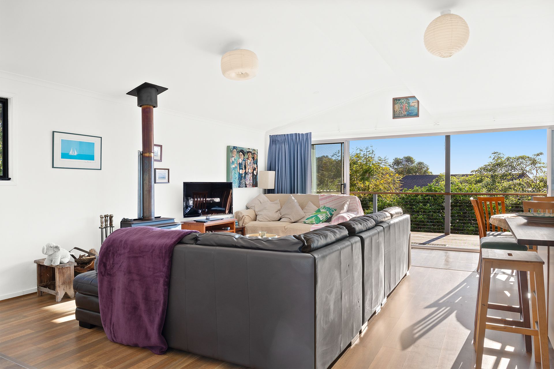 The main level comprises two spacious bedrooms, offering convenience and privacy. A stylish kitchen and lounge area, creating a central hub for relaxation and socializing. This area seamlessly opens up onto a deck, allowing you to enjoy the fresh coastal breeze and embrace the indoor-outdoor lifestyle.
