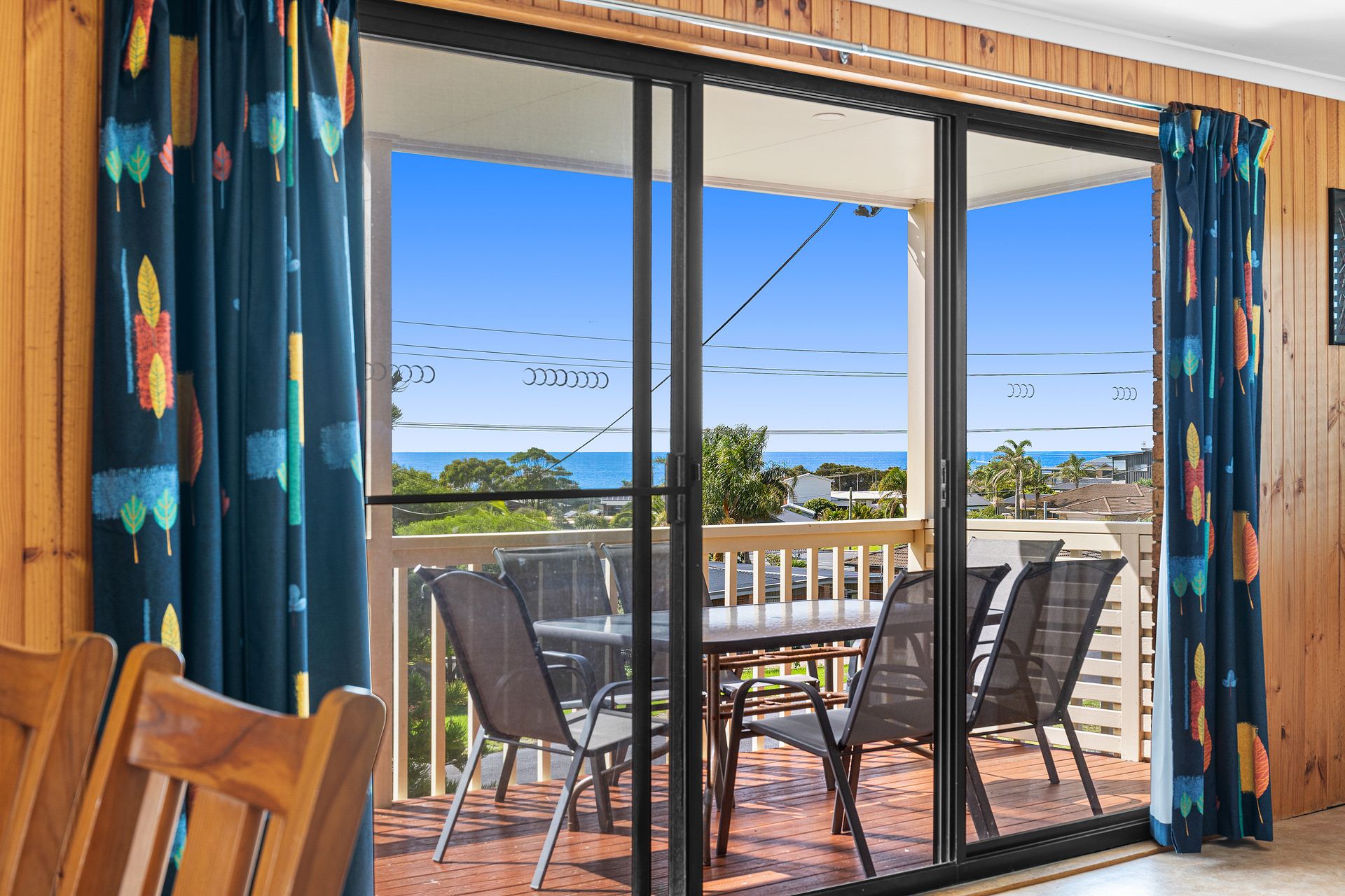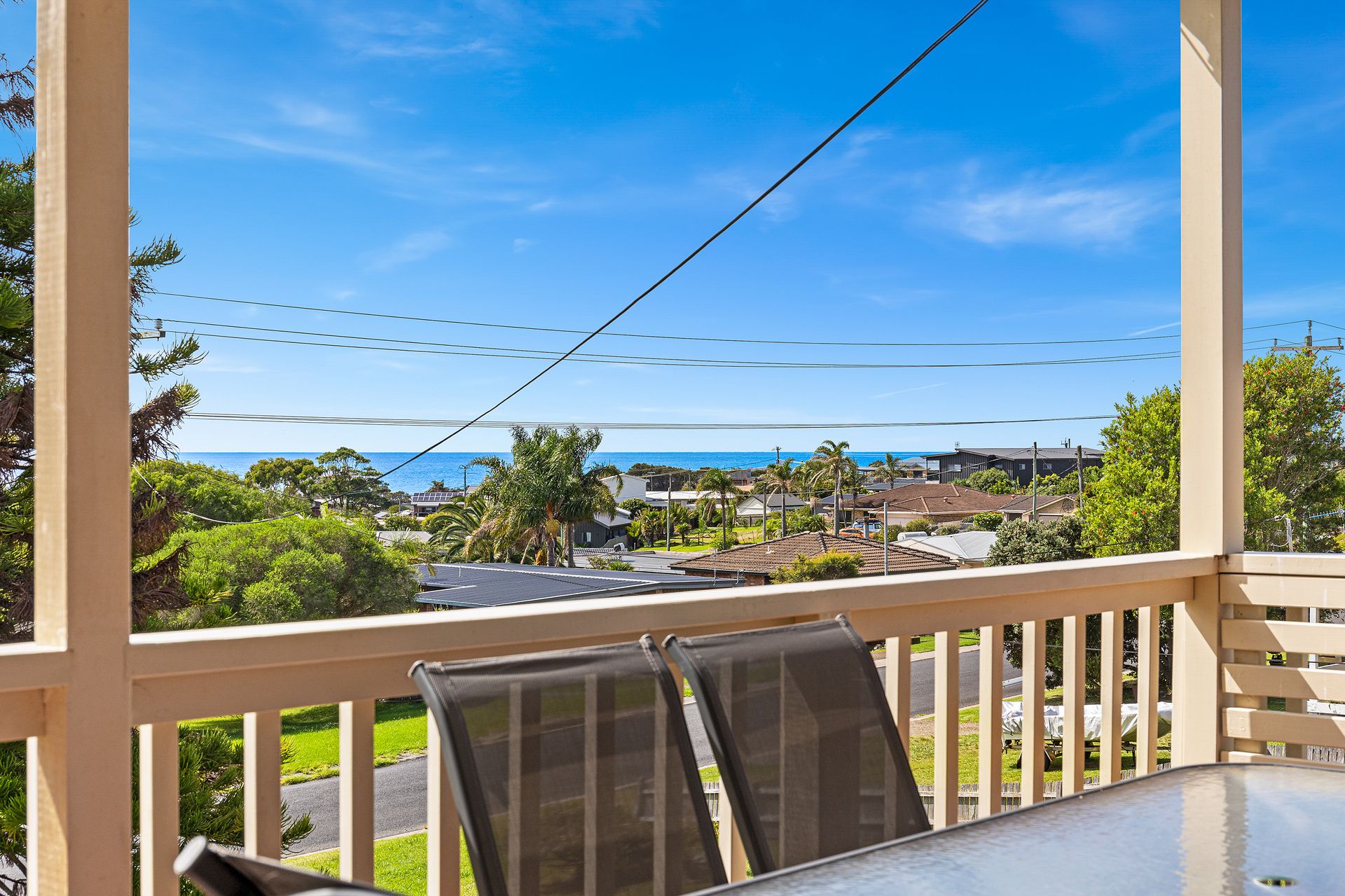 The home has six large bedrooms with two bathrooms, one with laundry combined. A fully equipped kitchen and fantastic ocean views.