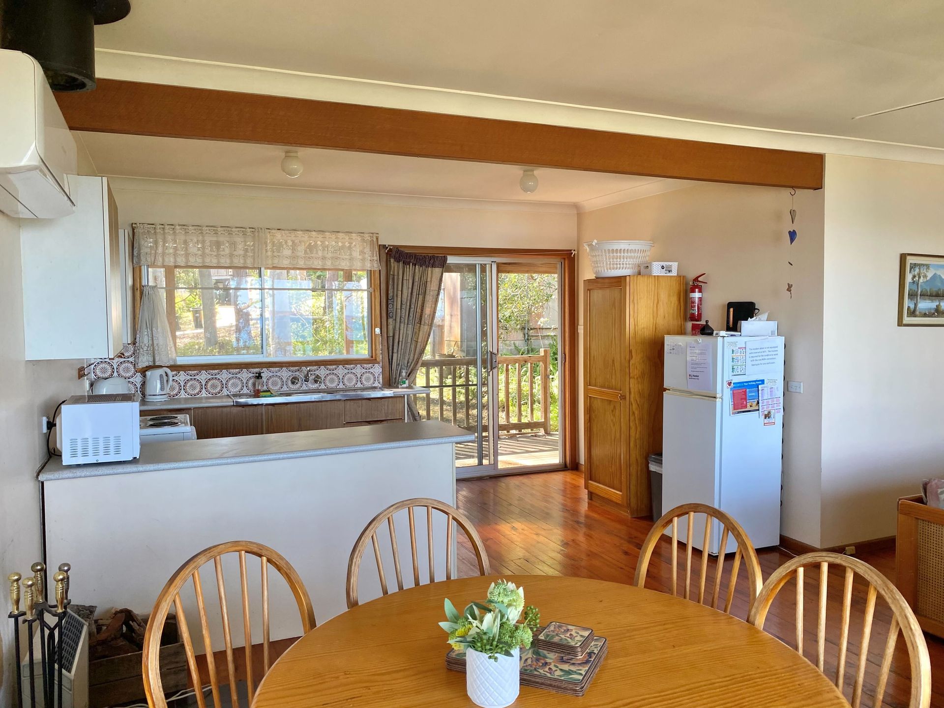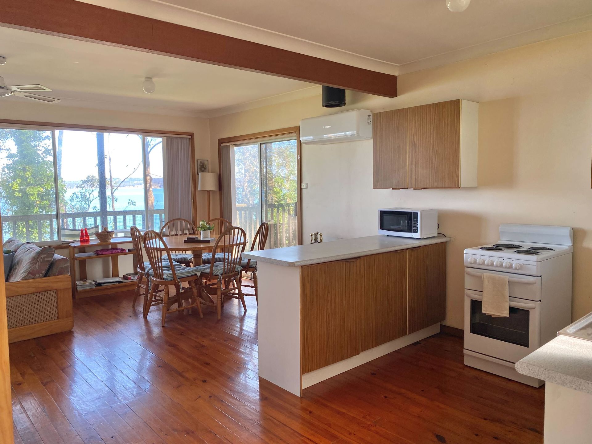 The quintessential beach bungalow. Relax on the verandah looking over the beach. Watch the myriad of birds that visit every day, walk the dog along the sand or curl up and read a book in the peaceful surrounds. Bring the kids, the dog, and the fishing rods...enjoy. Please note that this property has an external laundry.
